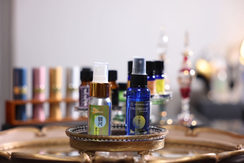 さらに静岡県産精油7種を使用した「静岡の香り 駿河」も開発しました。「クロモジ芳香蒸留水」を使用して、柑橘とクロモジによる、「安眠・熟睡」作用が期待できます。