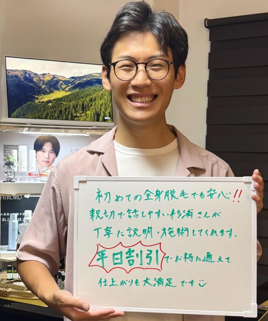 東京からの交通費を使っても安いし、何より優しい雰囲気の杉浦さんで安心して受けることができました。