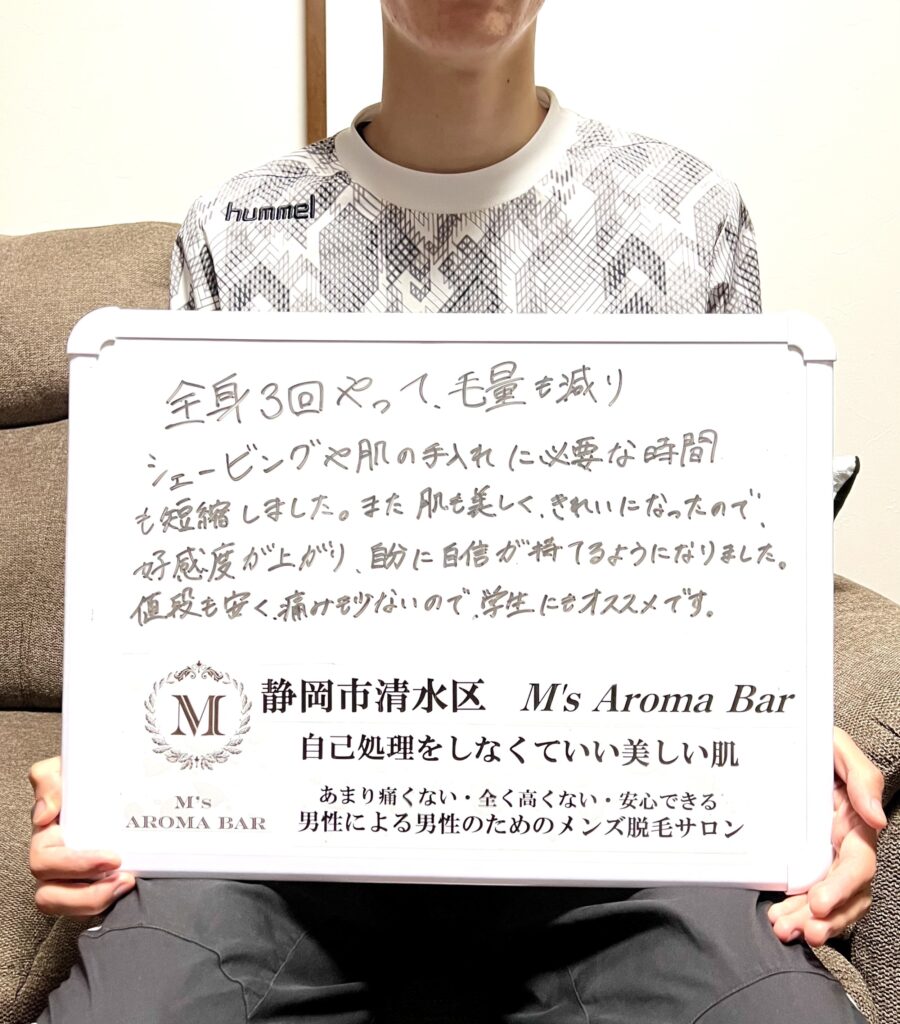 脱毛は回数がかかると聞いていたので、学生の間に完了できそうで嬉しいです。