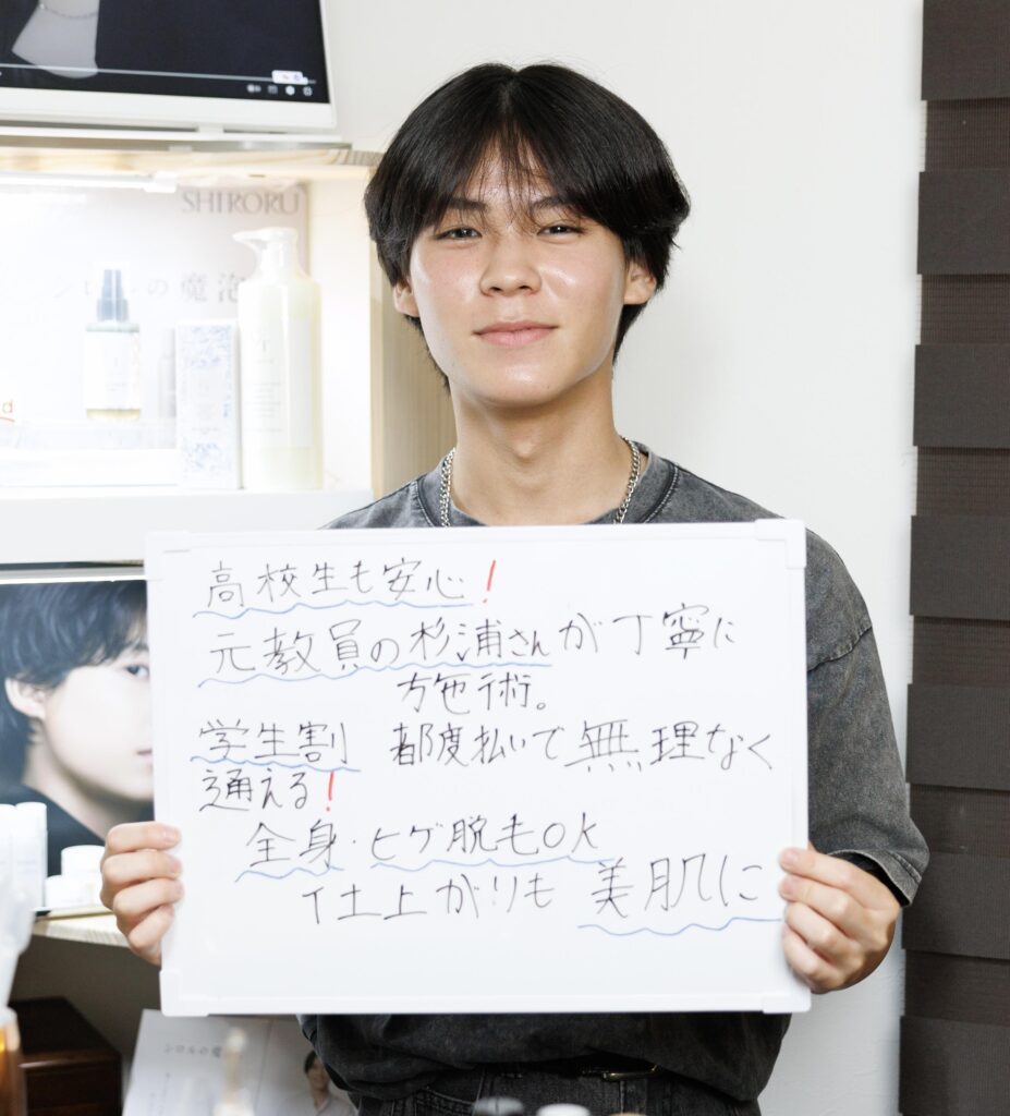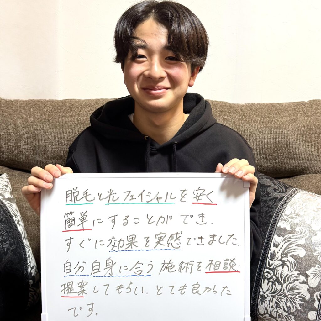 東京からの交通費を使っても安いし、何より優しい雰囲気の杉浦さんで安心して受けることができました。